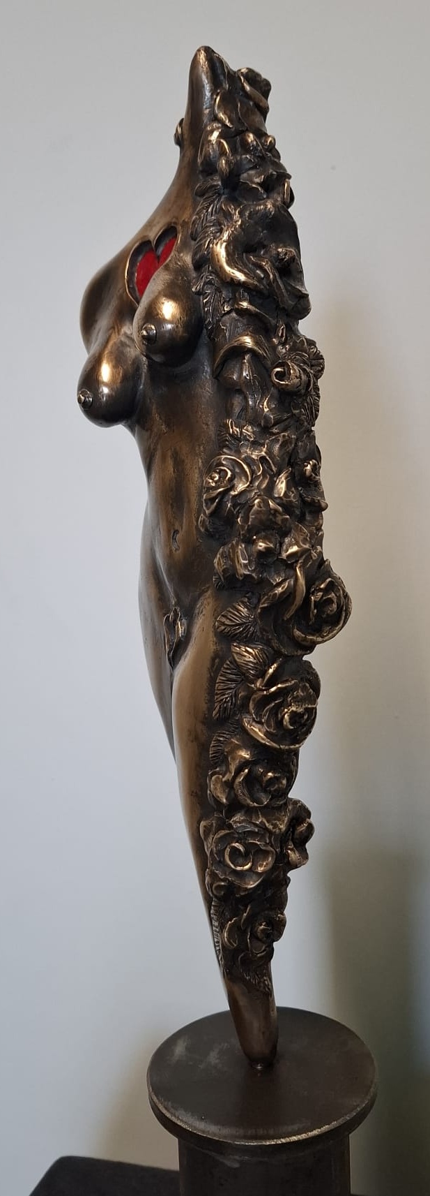 Marleen Bronze: Kopf (Rosenköpfchen) Körper: Holz Höhe: 160 cm Breite: 8 cm Tiefe: 7 cm Gesamtgewicht 8, 5 kg Preis: 1.400 € |